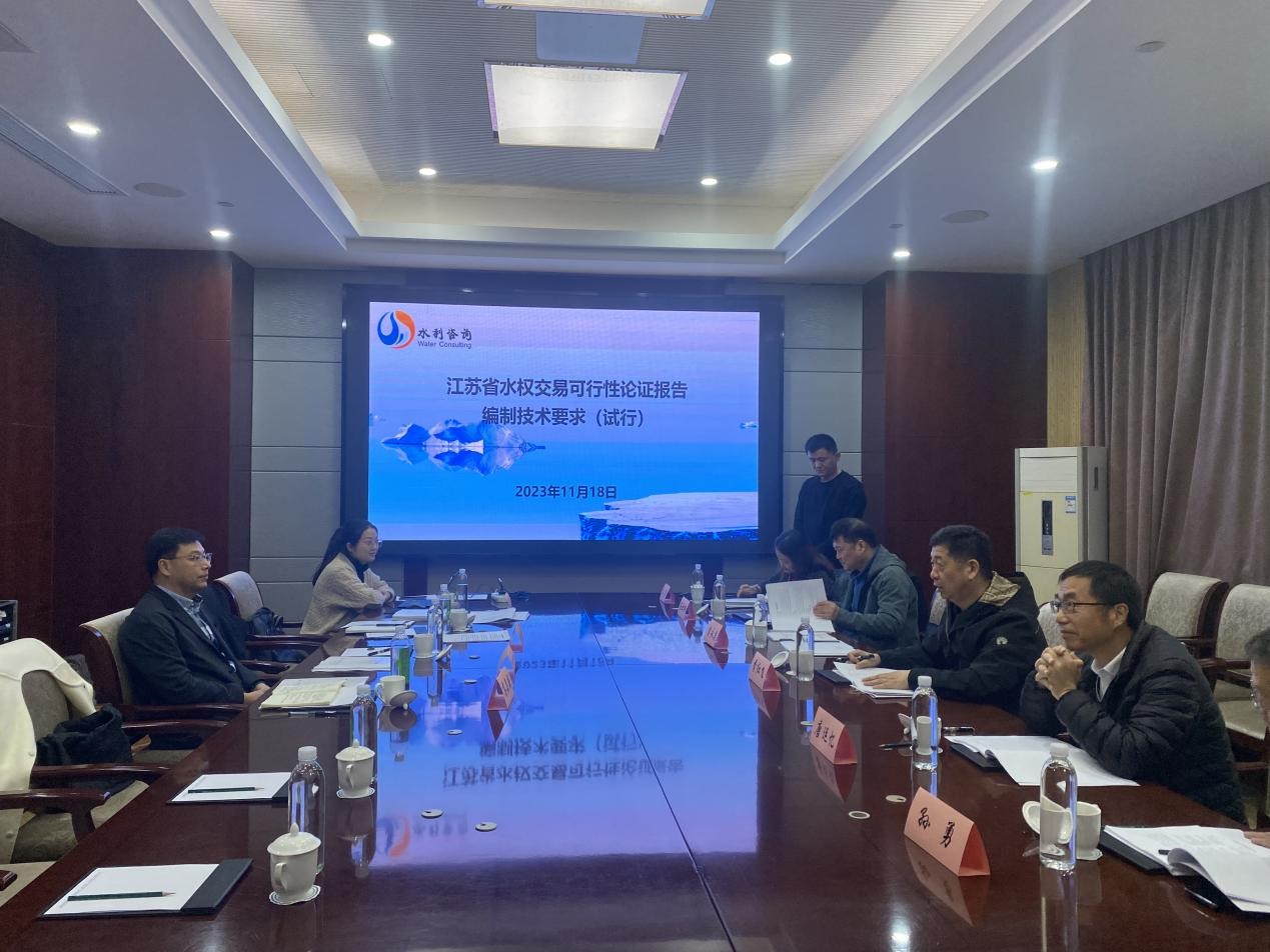 2023年11月18日,江蘇省水資源服務中心在南京組織召開了《水權(quán)交易可行性論證報告技術(shù)大綱編制》(以下簡稱《大綱》)驗收會,會議聽取了我司對《大綱》的匯報,認為《大綱》技術(shù)路線正確,交易原則合理,內(nèi)容系統(tǒng)全面,符合《水利部水權(quán)交易管理暫行辦法》《江蘇省水權(quán)交易管理辦法(試行)》等相關(guān)技術(shù)標準的要求。