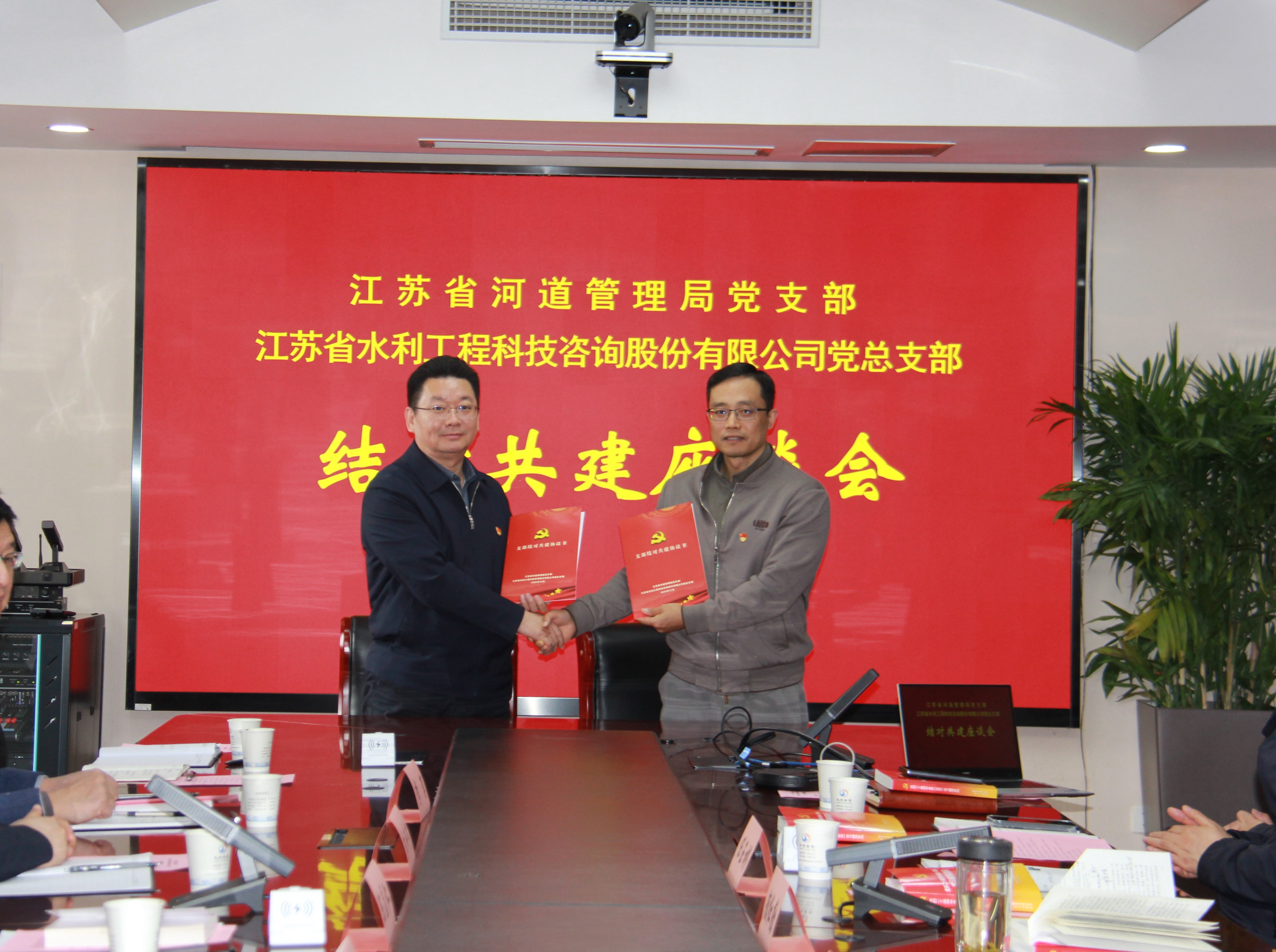 上午座談會(huì)上,雙方集中學(xué)習(xí)了《深化經(jīng)濟(jì)體制改革 推動(dòng)高質(zhì)量發(fā)展》《持之以恒推進(jìn)全面從嚴(yán)治黨》文件精神,集中觀看了《整治工程建設(shè)和招投標(biāo)領(lǐng)域腐敗 嚴(yán)查圍標(biāo)串標(biāo)》及《八秩榮光 英名永駐劉老莊》教育片。會(huì)上,雙方就推動(dòng)黨建與業(yè)務(wù)深度融合進(jìn)行了充分交流,并正式簽署結(jié)對(duì)共建協(xié)議,為未來持續(xù)深化資源共享與優(yōu)勢(shì)互補(bǔ),共同為推動(dòng)江蘇水利事業(yè)高質(zhì)量發(fā)展貢獻(xiàn)力量奠定基礎(chǔ)。