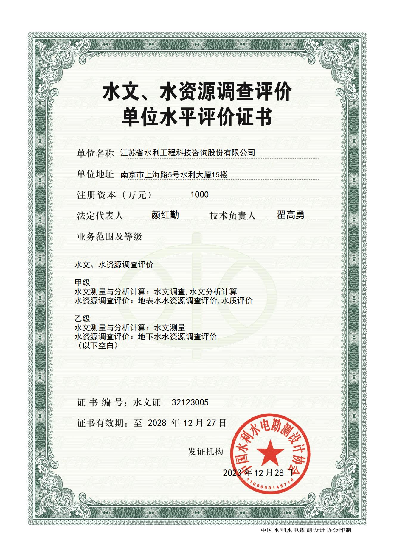 > 水文水資源調(diào)查評價電子證書