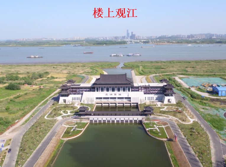 揚(yáng)州市瓜洲泵站工程站址位于古運(yùn)河南端瓜洲閘東側(cè),距長(zhǎng)江堤防150m,泵站設(shè)計(jì)規(guī)模為170m3/s,設(shè)計(jì)凈揚(yáng)程1.88m,最大凈揚(yáng)程2.72m,選擇6臺(tái)立式全調(diào)節(jié)軸流泵(3000ZLQ-28.4),單機(jī)設(shè)計(jì)流量為28.4m3/s,水泵配套1600kW高壓同步電機(jī),總裝機(jī)容量9600kW。采用肘型進(jìn)水流道、虹吸式出水流道,真空破壞閥斷流。主機(jī)組采用液壓全調(diào)節(jié)的方式調(diào)節(jié)葉片角度,液壓裝置設(shè)置2套。批復(fù)總投資4.03億元。瓜洲泵站被譽(yù)為揚(yáng)州“城市安全第一工程”,揚(yáng)州濱江枕淮,是全國(guó)唯一地處兩大流域交匯點(diǎn)城市,一旦遭遇江潮頂托、淮水并漲,城市澇水外排不暢。瓜洲泵站建成后,提高了揚(yáng)州市主城區(qū)水動(dòng)力條件,有效實(shí)現(xiàn)主城區(qū)清水、活水,改善水質(zhì)和水生態(tài)環(huán)境;提升了區(qū)域、流域防洪排澇能力,2020年汛期抽水量達(dá)3.23億m3,保障了揚(yáng)州城區(qū)“不淹不澇”。 瓜洲泵站建筑設(shè)計(jì)新穎。理念:打造園林景觀水利樞紐;創(chuàng)新:建筑整體外觀采用唐式古典建筑,高層廠房將古城墻與重檐歇山頂完美融合,實(shí)現(xiàn) “橋上觀樓,樓上觀江” 。體現(xiàn)了東方特有的審美情趣,美一是對(duì)稱美。美二是建筑群高低錯(cuò)落有致,別有風(fēng)味。將盛唐建筑出檐深遠(yuǎn)、磅礴大氣特點(diǎn)與水工建筑物恢弘的氣勢(shì)相結(jié)合。立面設(shè)計(jì)上,用揚(yáng)州傳統(tǒng)建筑色彩、白色和玻璃構(gòu)筑一個(gè)簡(jiǎn)潔大氣、有著獨(dú)特內(nèi)涵的水利樞紐。與古運(yùn)河、長(zhǎng)江交相輝映,彰顯瓜洲古鎮(zhèn)、古渡文化特征。瓜洲泵站即將成為揚(yáng)州市又一張亮麗名片和長(zhǎng)江邊上一道靚麗風(fēng)景線。