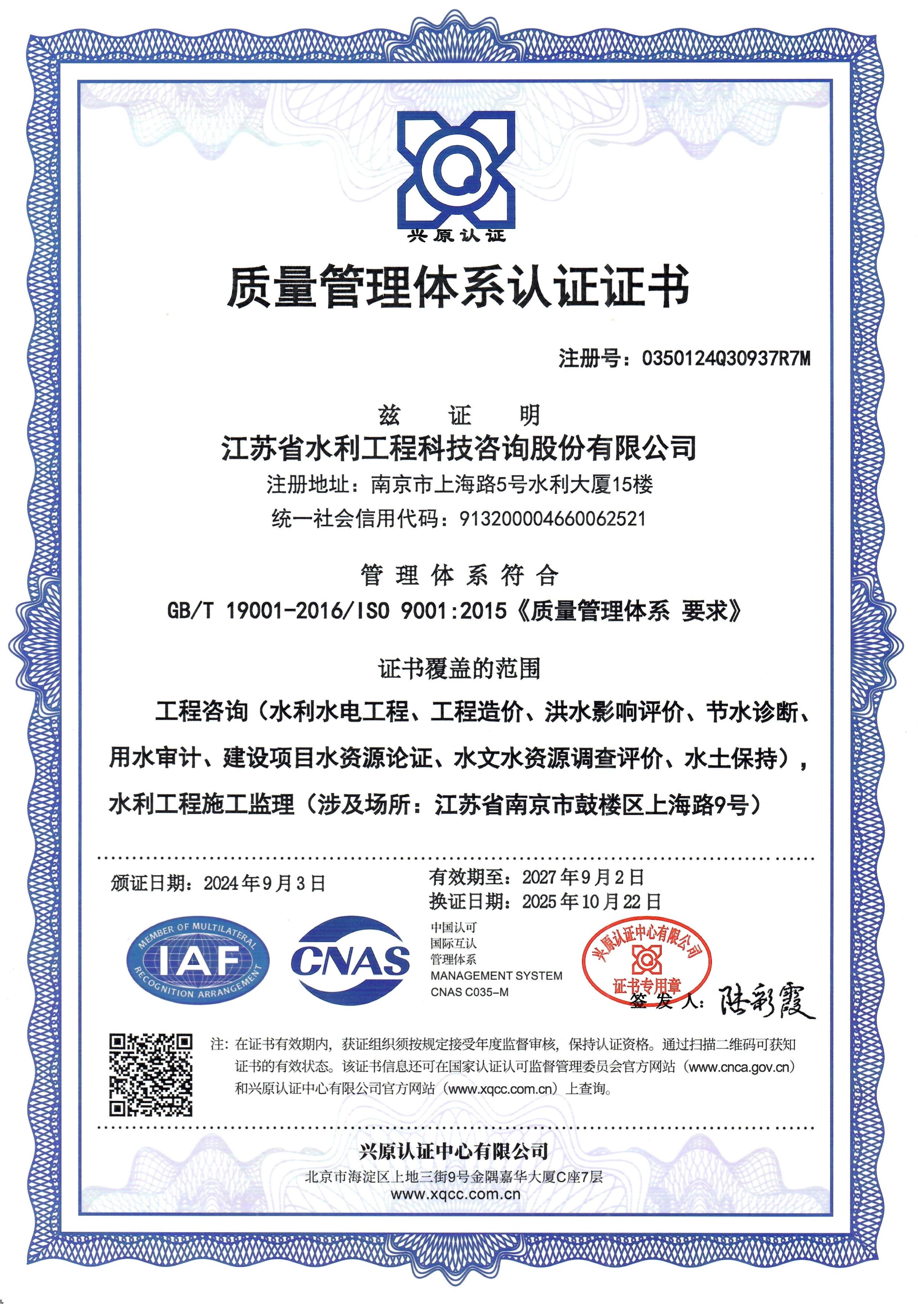 > ISO質(zhì)量管理體系認證證書