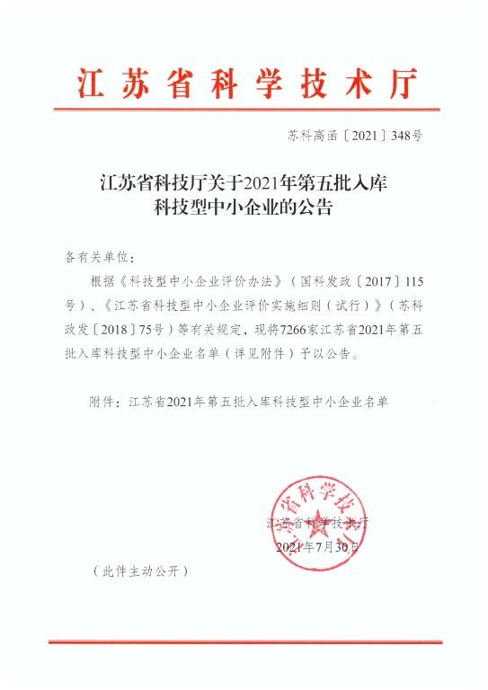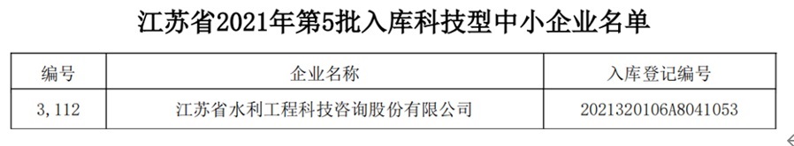 根據《科技型中小企業(yè)評價辦法》(國科發(fā)政〔2017〕115號),《江蘇科技型中小企業(yè)評價實施細則(試行)》(蘇科政發(fā)〔2018〕75號)等相關文件要求,我公司組織人力積極申報2021年度科技型中小企業(yè),經過嚴格審查,成功入庫2021年度科技型中小企業(yè)。公司將不斷引入高素質人才,提升自主創(chuàng)新能力,保護自主知識產權,增強企業(yè)核心競爭力。繼續(xù)加大科研投入,開拓企業(yè)創(chuàng)新發(fā)展領域,為企業(yè)更好、更快、更強的發(fā)展提供技術支撐,為江蘇水利科技發(fā)展貢獻應有的力量。
