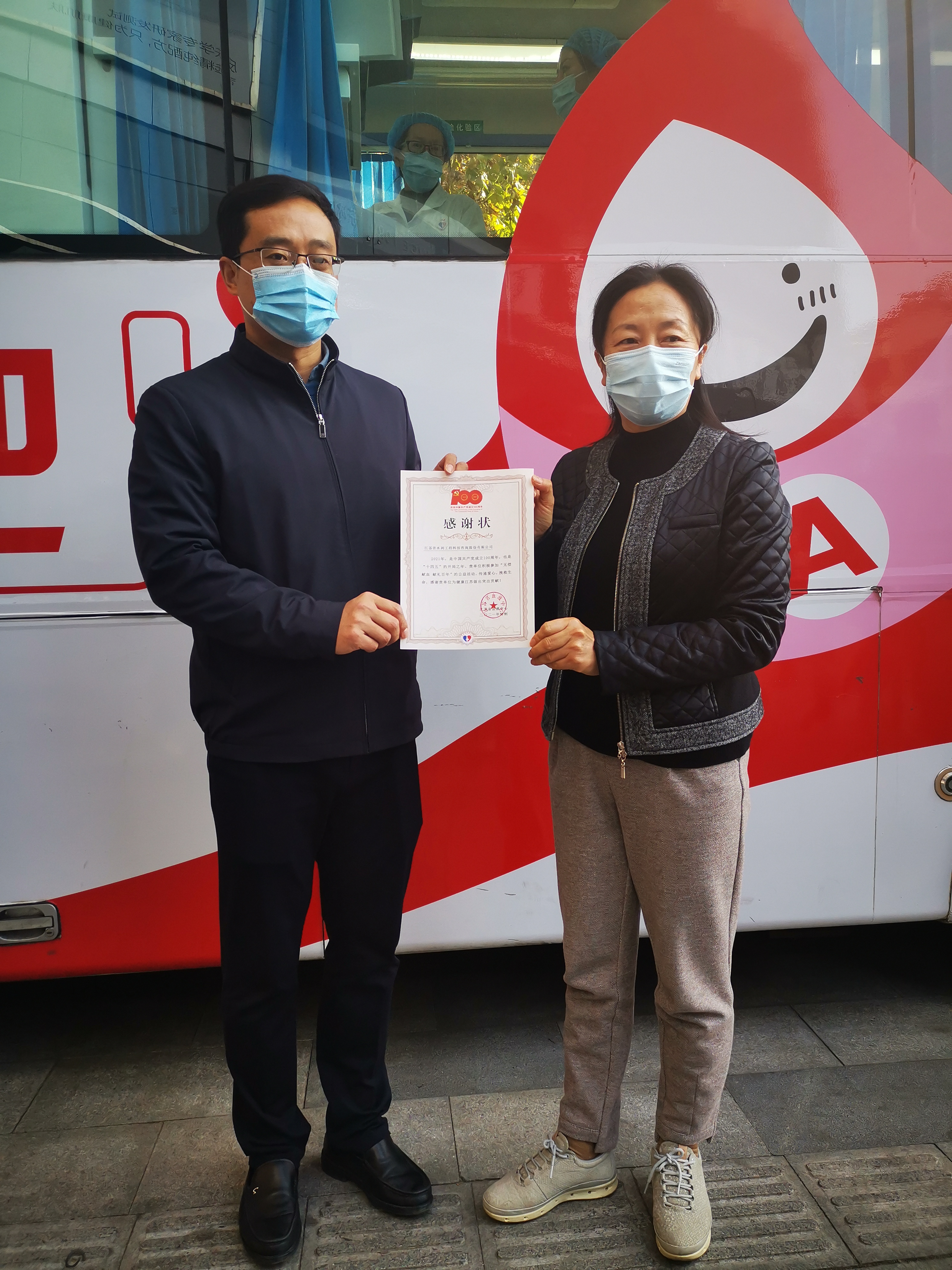 在抗擊新冠肺炎疫情特殊時期,為助力抗擊疫情,2021年11月29日,水利咨詢公司組織志愿者到大洋百貨獻血點參加“無償獻血 愛心抗疫”義務獻血活動,董事長兼總經理顏紅勤、副總經理任玉彬等經營層領導帶頭參加,采血中心郭東輝副主任到現場為公司頒獎。