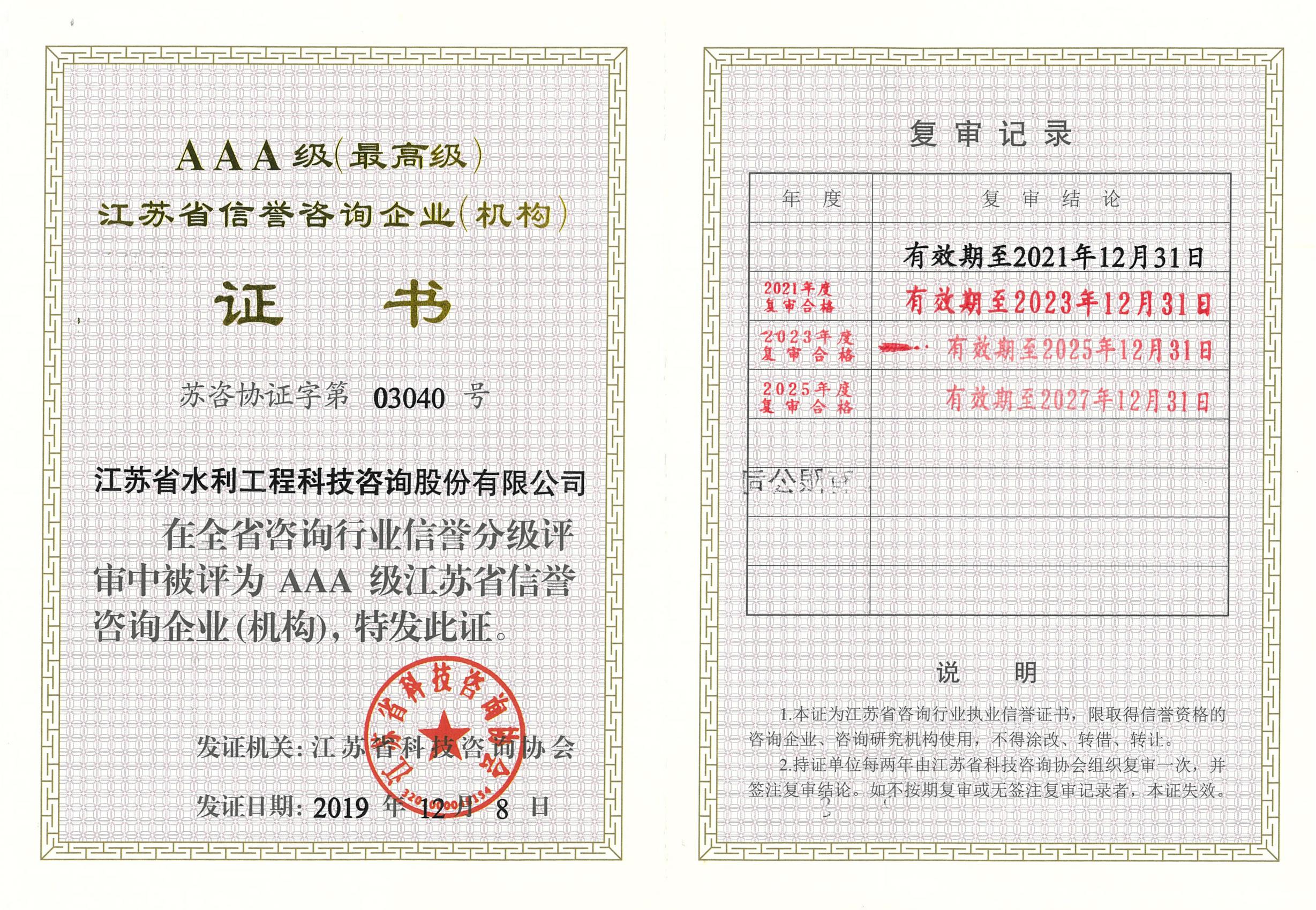 AAA級(jí)江蘇省信譽(yù)咨詢(xún)企業(yè)