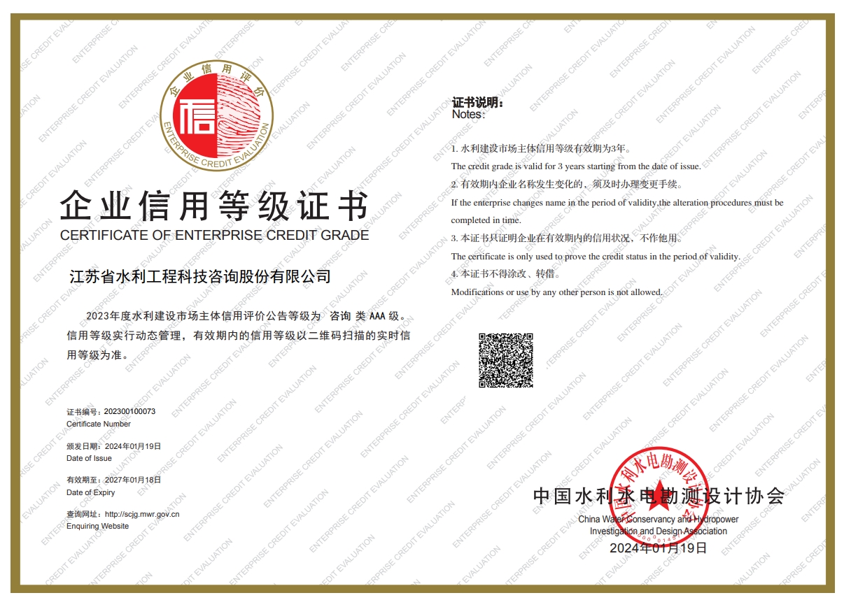 近日,中國水利水電勘測設(shè)計協(xié)會正式發(fā)布2023年度水利建設(shè)市場主體信用評價結(jié)果公告,我公司榮獲咨詢單位信用評價最高殊榮AAA等級。
