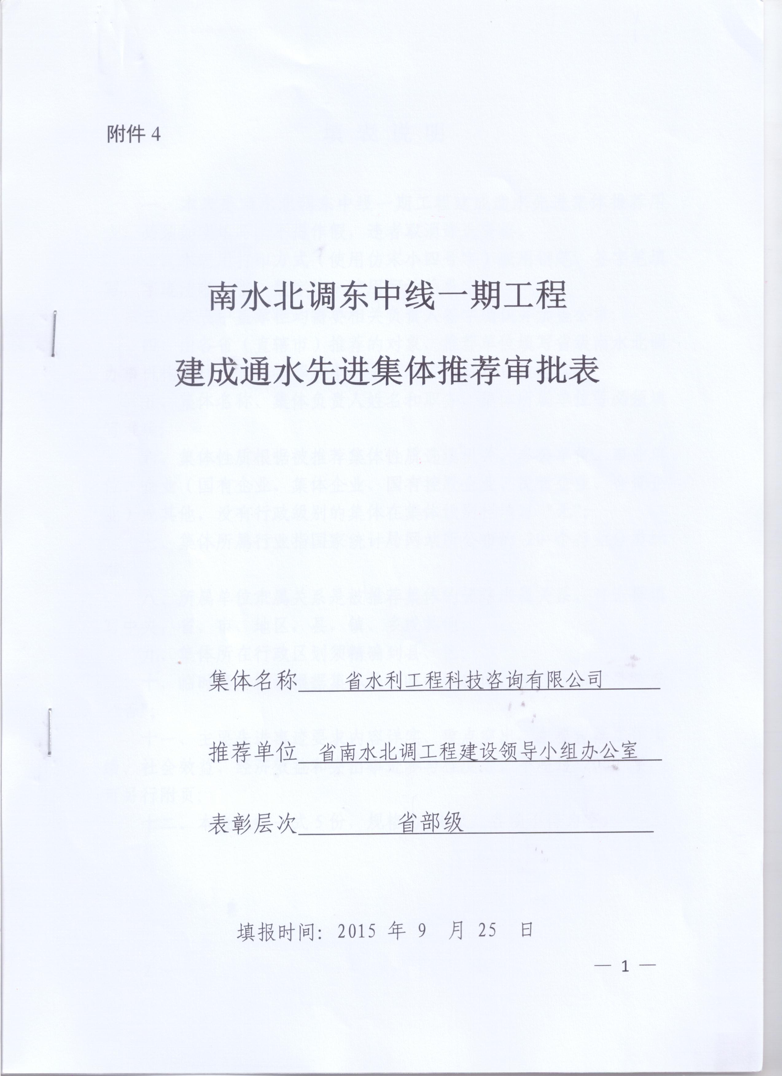 南水北調(diào)東中線一期工程先進(jìn)集體