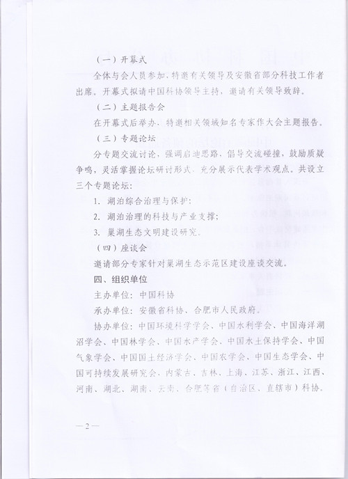 > 中國(guó)科協(xié)辦公廳關(guān)于舉辦第四屆中國(guó)湖泊論壇的預(yù)備通知