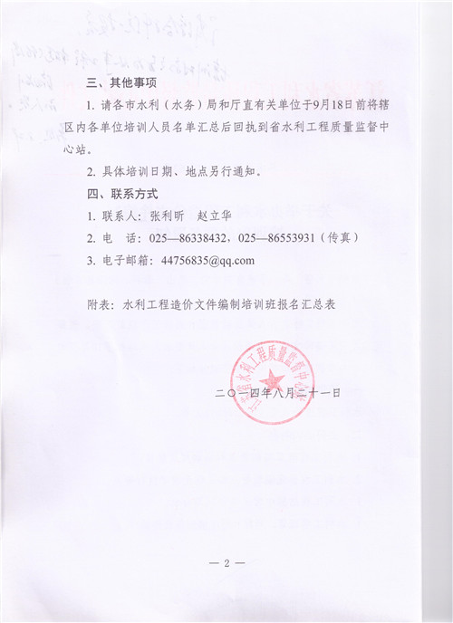 關(guān)于舉辦水利工程造價(jià)文件編制培訓(xùn)班的預(yù)備通知
