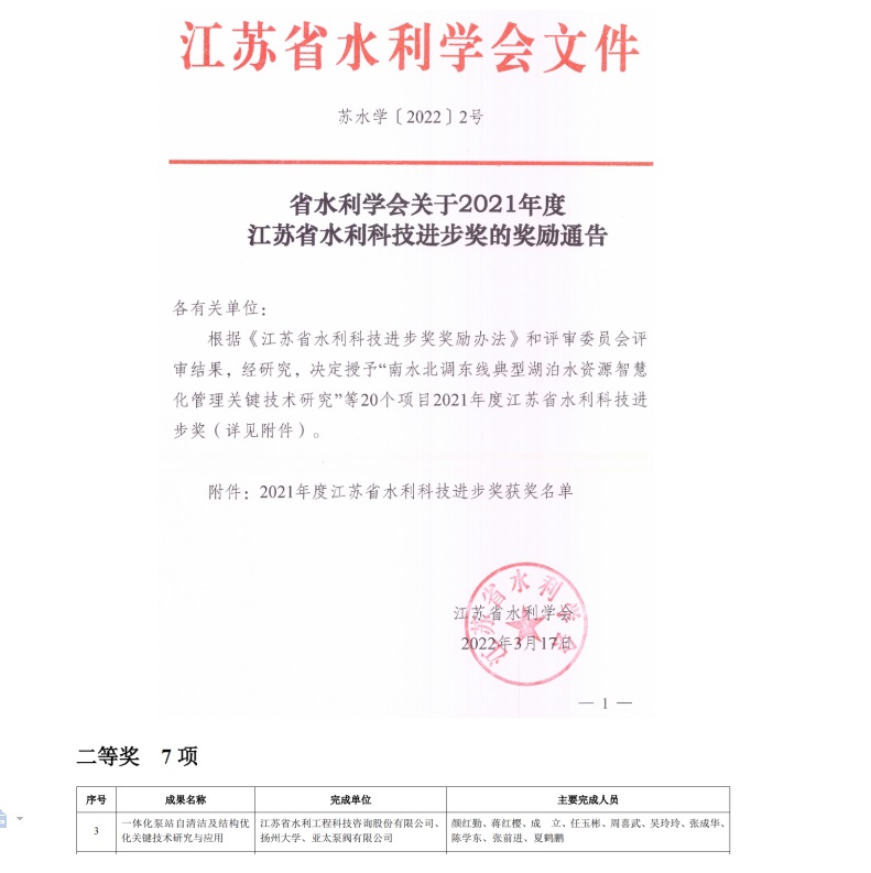 近日,根據(jù)蘇水學(xué)〔2022〕2號(hào)《省水利學(xué)會(huì)關(guān)于2021年度江蘇省水利科技進(jìn)步獎(jiǎng)的獎(jiǎng)勵(lì)通告》,由我公司主持完成的《一體化泵站自清潔及結(jié)構(gòu)優(yōu)化關(guān)鍵技術(shù)研究與應(yīng)用》項(xiàng)目喜獲2021年度江蘇省水利科技進(jìn)步二等獎(jiǎng)。 本項(xiàng)目通過數(shù)值模擬和模型試驗(yàn),研究泵間距、中心距、懸空高等安裝幾何參數(shù),以及導(dǎo)水錐、筒體結(jié)構(gòu)形式對(duì)自清潔效果的影響,并對(duì)筒體結(jié)構(gòu)性能進(jìn)行數(shù)值分析。提出筒底阿基米德螺旋柵及逆時(shí)針圓弧肋條,實(shí)現(xiàn)筒底的自清潔;研發(fā)四種一體化泵站自清潔關(guān)鍵措施及清淤裝置,解決泵站筒體內(nèi)底部雜質(zhì)難以清理等問題。 本項(xiàng)目取得了豐碩的科研成果,發(fā)表學(xué)術(shù)論文3篇,授權(quán)實(shí)用新型專利4項(xiàng),相關(guān)研究成果已轉(zhuǎn)讓江蘇省明純給排水設(shè)備有限公司,并應(yīng)用于江蘇省亞太泵閥有限公司產(chǎn)品,推廣應(yīng)用價(jià)值及社會(huì)效益顯著。 (供稿:研發(fā)中心 夏鶴鵬)